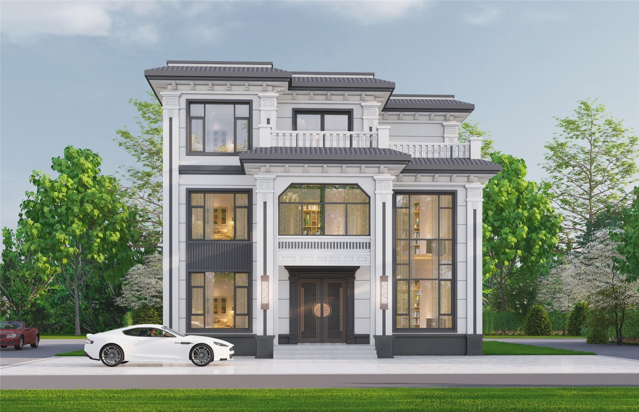 涪陵12 新中式两层半(12.8x13.06米)-【易设计】